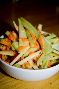 I’ve never really been a fan of coleslaw. I dunno, it just doesn’t do it for me. However, the other day I was grocery shopping and saw a bag of broccoli slaw that looked pretty yummy. I was about to put it in my cart when I noticed that it was just broccoli and carrots sliced thinly – and that it was $4.99. Um. Seriously? I decided that surely I could chop veggies that way myself. I mean really, five bucks for a bag of veggies that will cost me about two dollars ?