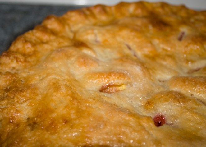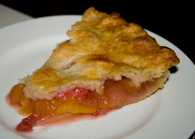 We had a bunch of fruit leftover from my sister’s bridal shower this weekend. So, I took the nectarines home, combined them with some raspberries I had in the fridge and tried out a new recipe for pie. It was kind of a complex recipe – but the pie was really good. Very flaky crust with a lot of flavor and perfectly tart filling. I’ll probably make some tweaks the next time I make this pie though (I always go “by-the-book” the first go round of a recipe). I would have liked more fruit in this pie, I like mine mounded up, and the filling was just a smidge runny – probably will cut back on the added juice next time. Overall though, excellent.