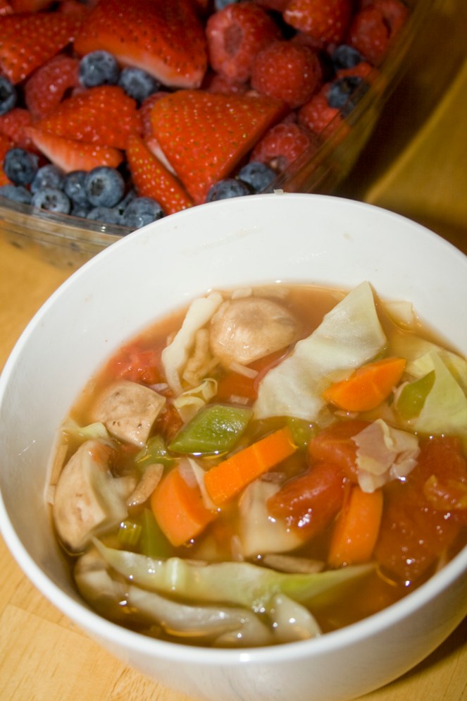 Insert the Cabbage Soup Diet. I have a specific event in 6 days that I’m trying to stave off weight gain for. I’m totally fine if I gain the weight back afterward because I know that as soon as my toe stops being a pain (literally) I’ll be back in the gym and eating properly…which is the correct way to manage weight long-term. Unfortunately, I don’t have long-term. I have 6 days.
