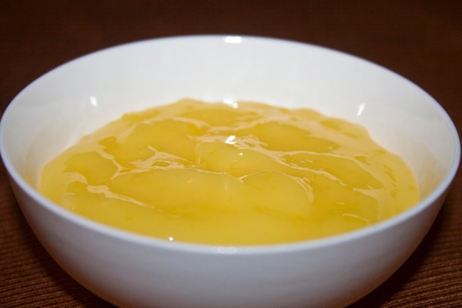 3. Stir in lemon juice, butter and lemon peel. Cook over simmering water for 15 minutes or until thickened.
