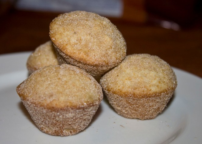 Sometimes, you just want a doughnut. If you’re like me, you have trouble justifying the drive to a bakery just to buy one, so you get a dozen. And then eat them all. Not good. Here’s my take on a mini-muffin that tastes just like a delicious doughnut. Without the guilt. The original recipe for this used butter, I like to substitute applesauce wherever I can – and always have success when using it in muffins or bread. These are light and delicious. Bet you can’t eat just one! I’m glad I’m heading out of the house – otherwise there’s no way these would make it to the meeting I’m taking them to tonight!