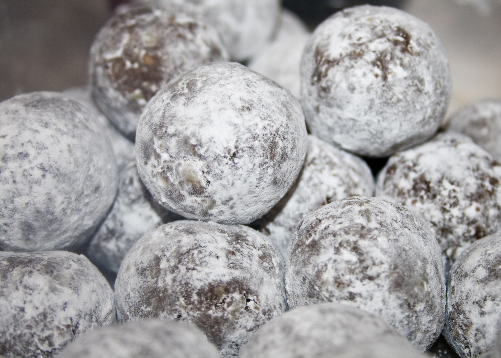 - Shape into 1 inch balls, and roll in additional confectioners’ sugar. Store in an airtight container for several days to develop the flavor. Roll again in confectioners’ sugar before serving.