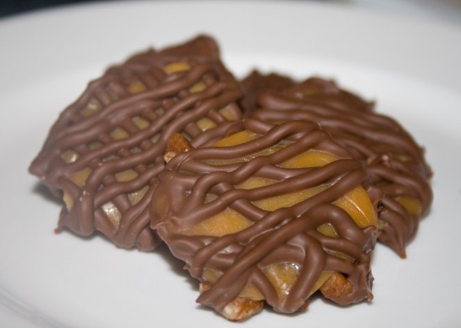 Turtles (so named because of their cute turtle shape) are delicious. You can buy a box of them for about $20. Or, you can make them yourself for WAY less without much effort at all. Today I used up the remainder of a bag of caramels, and only had pecan pieces (which I just made little piles of and put the caramel on top) so this batch does not totally look like turtles…but you get the idea.