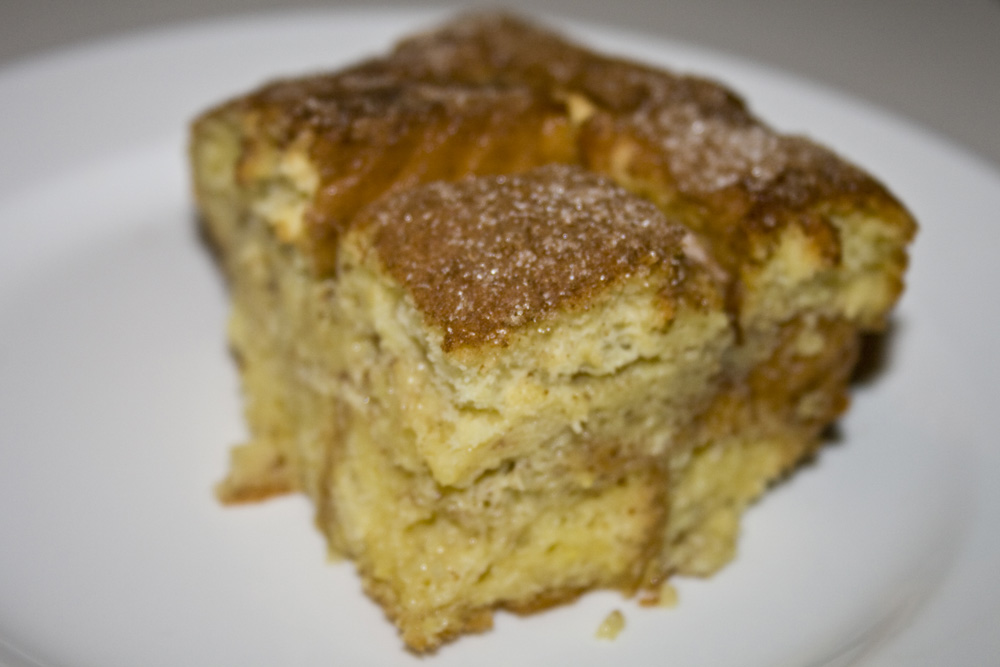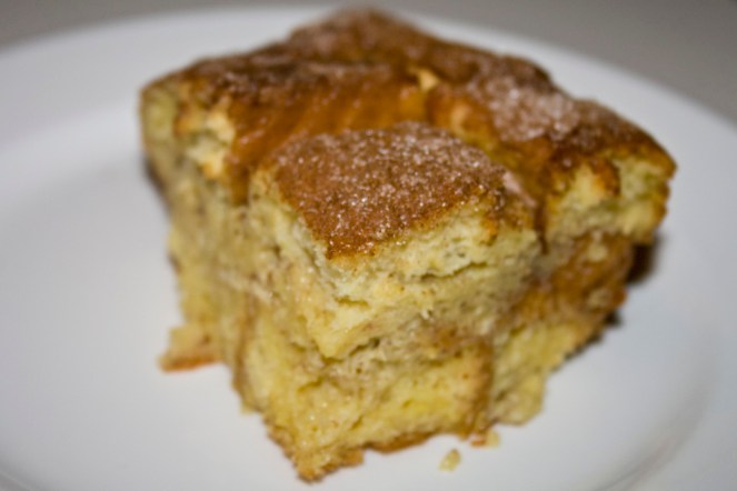 I enjoyed a couple servings of this and didn’t feel it needed any topping at all. The sugar cinnamon on top got a little crunchy and was just delicious. My kids and hubby all had it with syrup though. It would be good also with a dusting of powdered sugar.