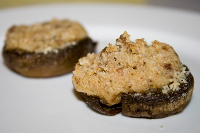 Oh how I love mushrooms. One of my favorite appetizers is the stuffed mushrooms at Olive Garden. I know that all the cheese, butter, cheese and breadcrumbs takes away from the nutritional value of the shrooms, but I don’t care. Mmmmmm delicious. Tomorrow we’re having an all day Star Wars Marathon with our small group for my hubby’s birthday. I made up a batch of these babies for the occasion – bonus, this recipe can be made ahead so all you have to do during your event is pop them in the oven! Baked up a couple to taste test and am now struggling to not just make the whole batch and eat them for a late night snack. Must resist….