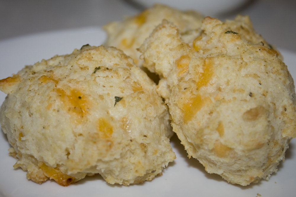 I’ve only been to Red Lobster a couple of times, and the only memorable thing about my visits was their biscuits. Light cheddar biscuits filled with savory seasonings. Yum yum. This makes about 24 biscuits – so if you’ve got a small family, you might want to cut the recipe in half. I guarantee that you’ll eat however many you make – and these aren’t exactly diet food.