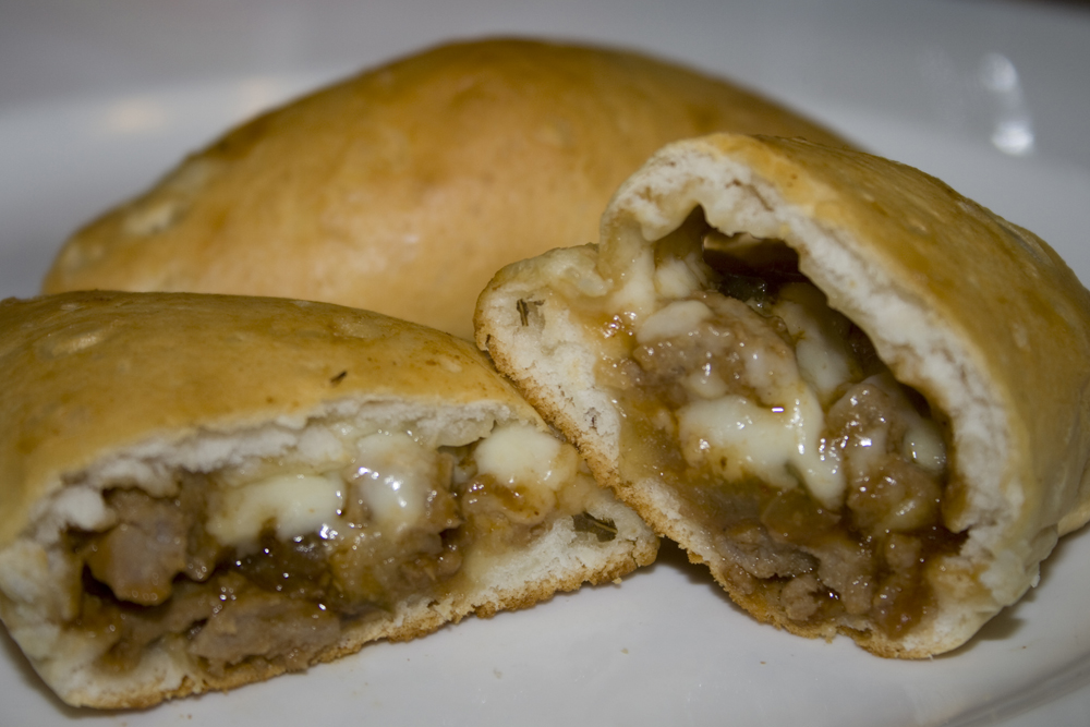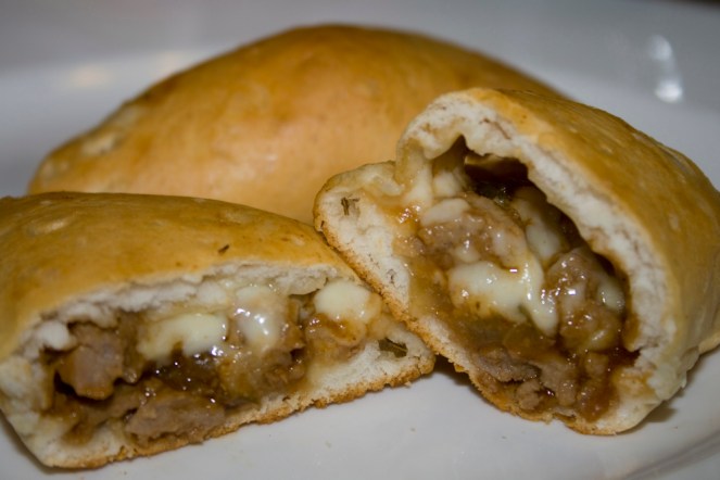 I totally took the cheater rout and used pre-made buttermilk biscuits for my bread wrapping and put together a quick filling with ground turkey, onions, green peppers and BBQ sauce. This was a quick and easy dinner that was a perfect departure from our normal Mexican grub. Just a hint of something different is always welcome change…it’s so stinkin’ easy to get in a food rut and make the same stuff over and over. I was thinking, you could easily make a batch of these for a football game or as appetizers at a party. They are all wrapped up, making for perfect finger food.