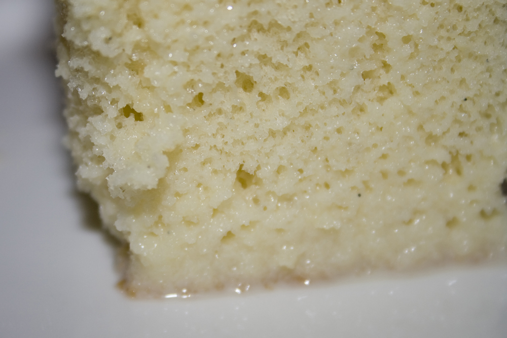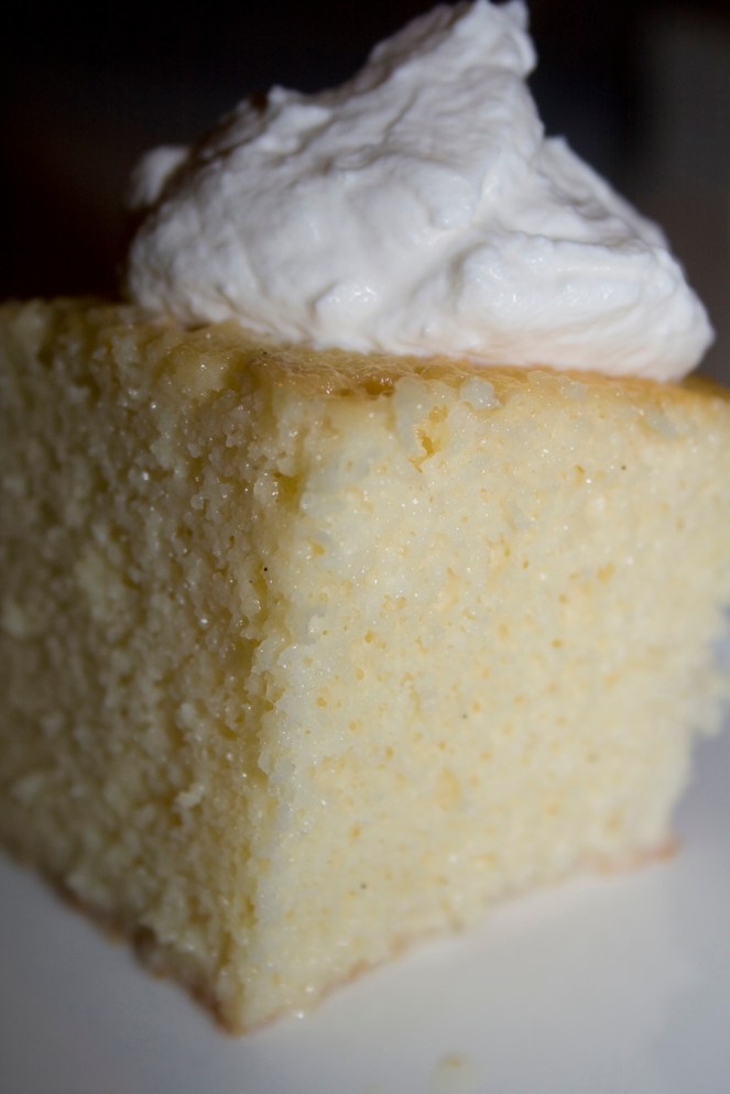 I added the innards of a  vanilla bean to my cake batter because, well…I just think everything is better with vanilla bean in it. It would still be delicious with just the extract though. The big change I made to my version of this cake was the addition of a little bit of dark rum. Just a hint. Nobody is going to get tipsy off this cake. But it adds an extra kick to the decadent creamy light but moist cake. Seriously the texture of this cake is out of this world. See the little hit of liquid where the cake meets the plate? That’s money baby. Pure awesomeness.