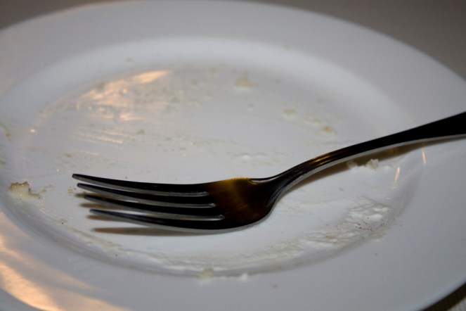 My plate about 10 seconds after serving myself a piece. Maybe less than that. It’s very easy to eat tres leches quickly (like a shark…no chewing required) because it’s so moist you don’t even really need to use your teeth. Enjoy!