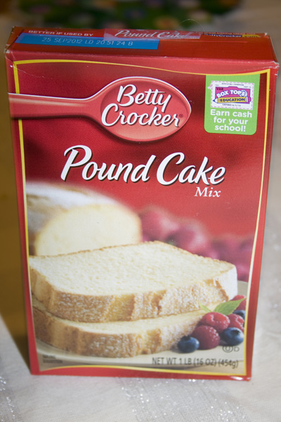 - 1 (16-oz.) package pound cake mix