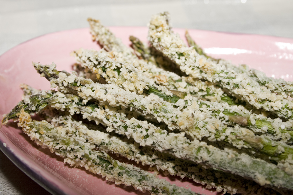 In general, my kids are very good at eating their vegetables. But I’m always looking for ways to make them more appealing. Although they’ll both eat asparagus with just a little olive oil, salt n’ pepper – they certainly don’t gobble it down like they did these crunchy flavorful asparagus fries. Yum yum! These would be great with any poultry or pork tenderloin or even as an appetizer for your next party. Bet you’ll even get those picky eaters to like asparagus with these beauties!