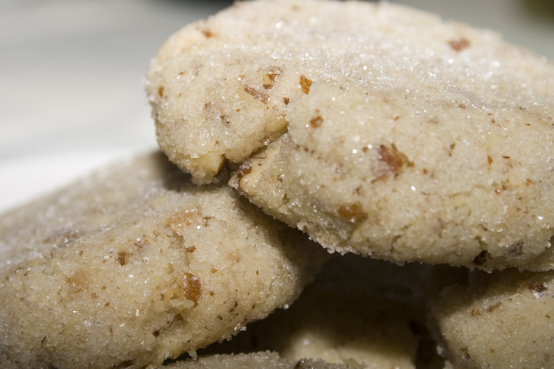 These get several sprinklings of sugar and come out of the oven with a sweet crunch baked into the outside and a rich buttery nutty packed interior.