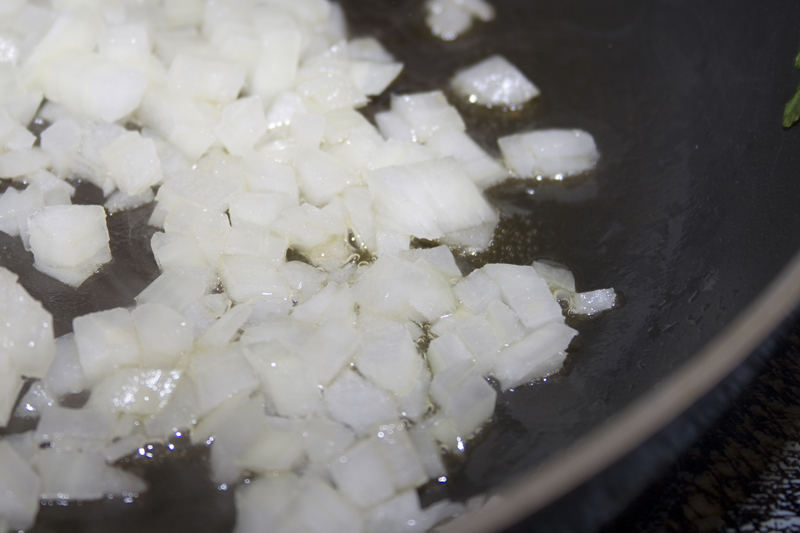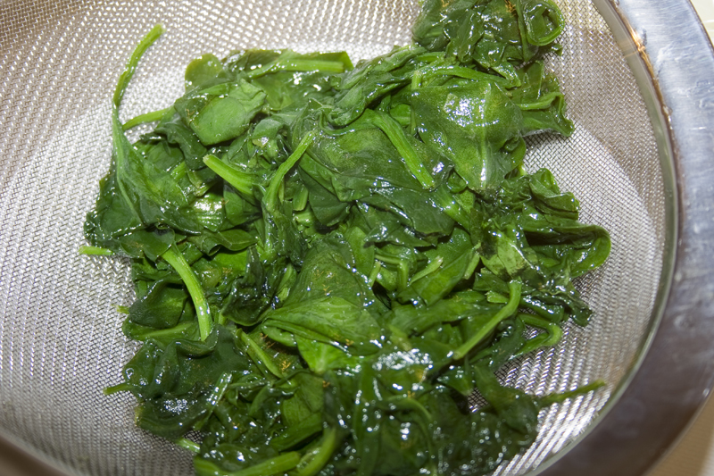 Sauteed in a pan until wilted. Then drained and roughly chopped it.