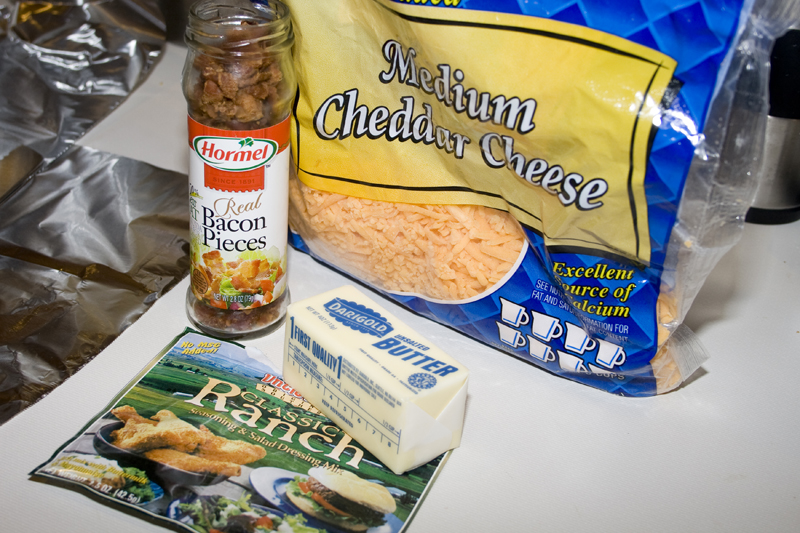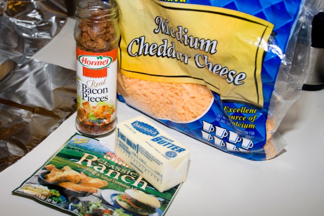After sprinkling the cheese and bacon. Melt the butter and add it to 1 T of the ranch dressing mix. Drizzle, cover and bake.