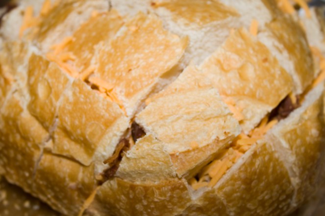 I’ve seen this “recipe” so many times on Pinterest, I just had to give it a try. It is not elegant. It is not classy. You should not serve this to impress your husband’s boss. This is as far from diet food as you can possibly get. Not good for you at all. I could feel my arteries seizing up as I ate it. But I could not stop. Need bread? And cheese? Think all things are better with bacon? And butter? Yeah…I told you it wasn’t good for you. When you are ready to kick that New Year’s resolution to the curb, this is the thing to help you along.