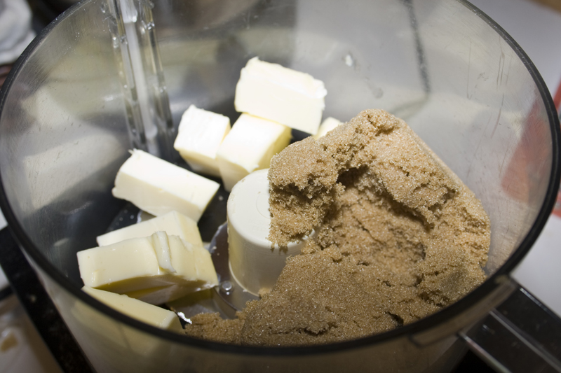 Pulse together some butter, brown sugar and flour.