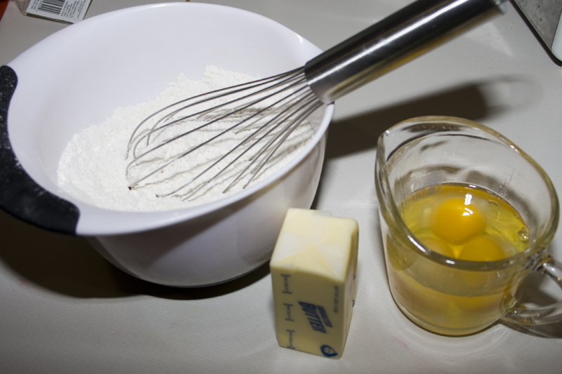 Then we’re going to make our cake batter. More butter, flour, eggs, sugar – your standard cake ingredients.