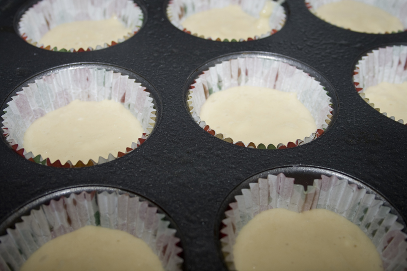 Once the batter comes together, fill your liners halfway.