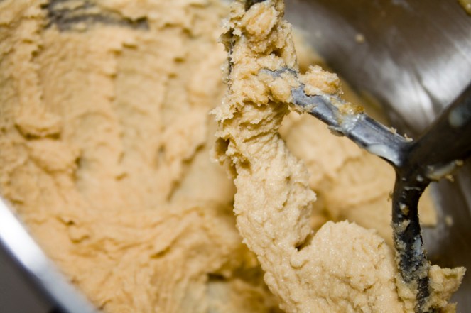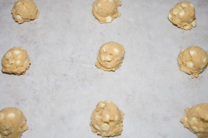 Rounded scoops onto a cookie sheet.