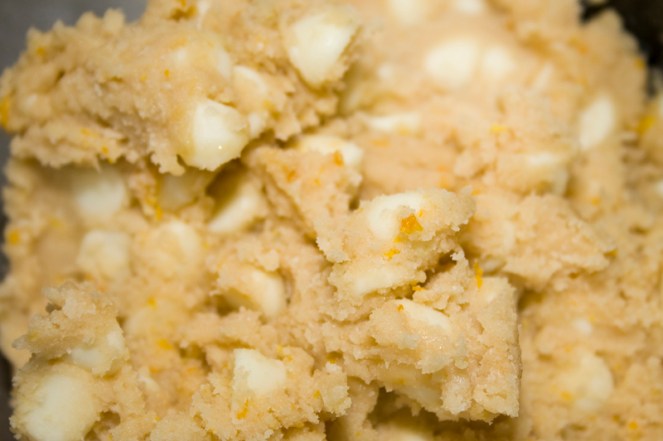 Some white chocolate and orange. Isn’t that orange zest lovely? Sir gently until combined.