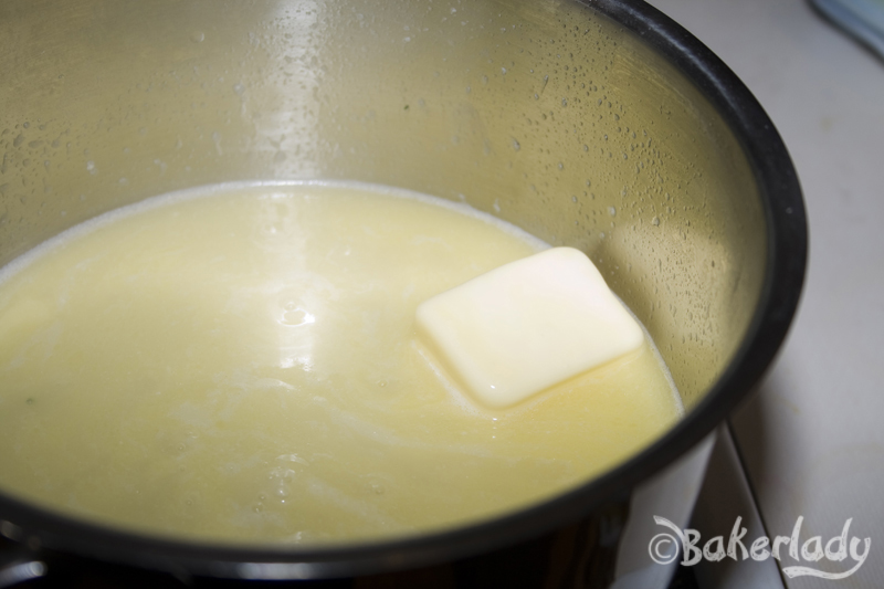 Then we’re going to make our sauce. So easy. Melt some butter.