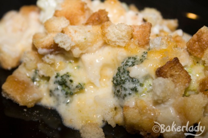 Are you sick of making casseroles with cream of *insert whatever has been creamed* soup? This broccoli chicken bake has a rich creamy sauce that you make yourself in just a few quick minutes. The taste is fantastic, similar to what you’d get with a condensed soup…but so much better. It has a crunchy buttery topping and is full of flavor. I have no idea what about this is “French”, but it is most certainly supreme. Supremely amazing and delicious. Enjoy!