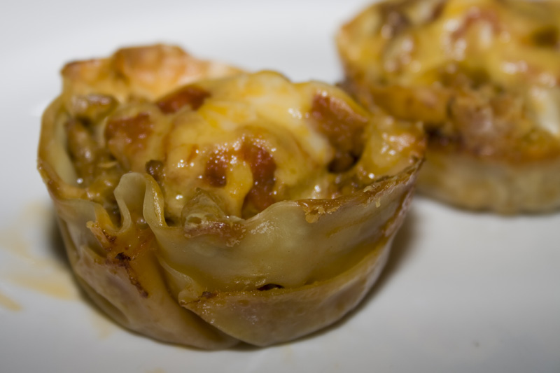 Mexican food is a big time favorite in my house. We have some variety at least once a week. And it seems that whenever I make tacos, I always have leftovers. Not enough really for another meal though. I hate throwing food away, leftovers especially. I mean, I already made all the stuff right? What a waste! So, I borrowed an idea from “Just Us” using wonton wrappers and my leftover taco stuff to create a quick and easy lunch. Used up all my leftovers, but put a new spin on them so I wasn’t bored with my food. I hate being bored with meals.