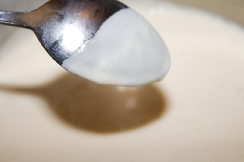 When the custard coats the back of a spoon, it’s done. Put it in the fridge to cool. I always press some plastic wrap down onto the top so it doesn’t develop a film as it cools off.
