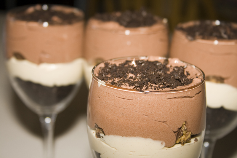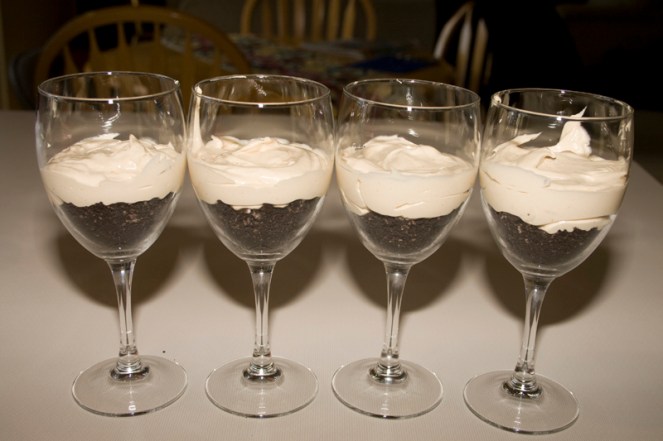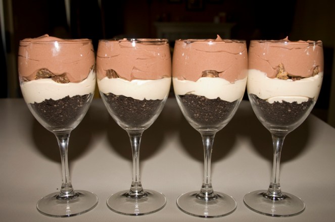 Then mix the chocolate mousse ingredients and dollup it over your peanut butter cup layer.