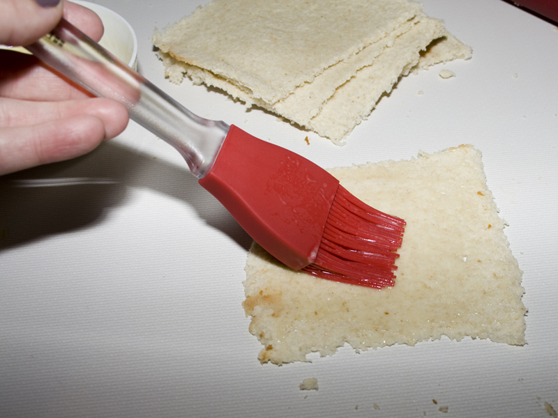Spread both sides with melted butter. Yes, both sides. Yes, your counter is going to get a little messy.