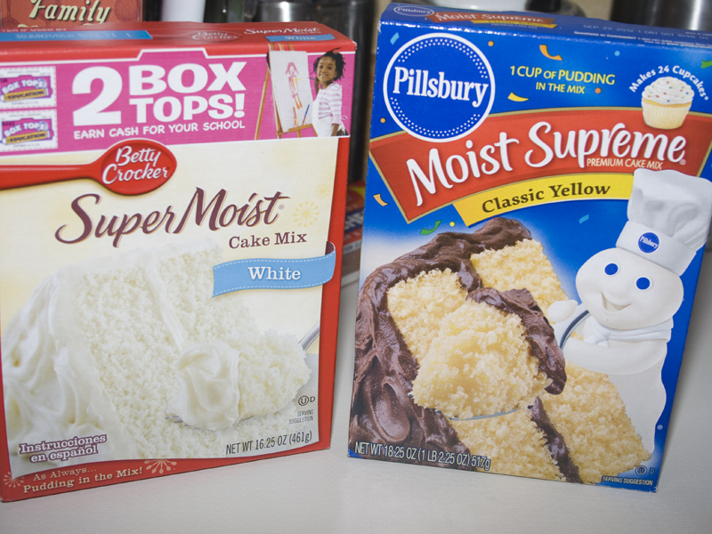 This recipe has one tricky part. It comes when you are at the store (or in your pantry) getting your ingredients. All cake mixes are not the same. I know these look like they’d both work, but they wont.