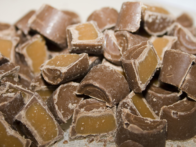 Mmmmmm. Caramel. Cut them in half.