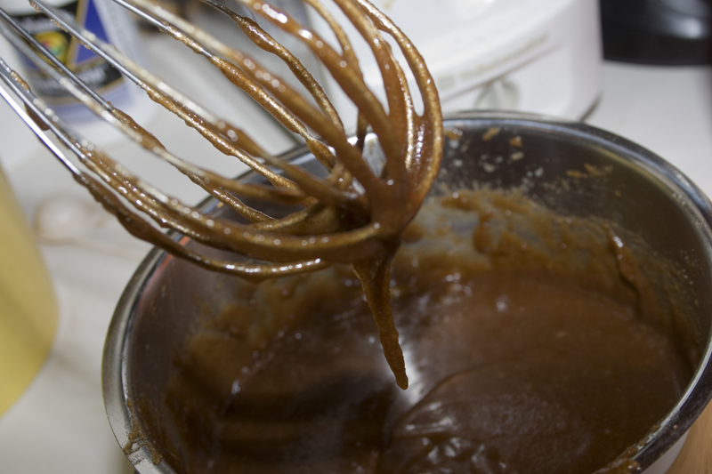 We start by making our cinnamon butter swirl. Some butter and brown sugar are melted together and boiled briefly.