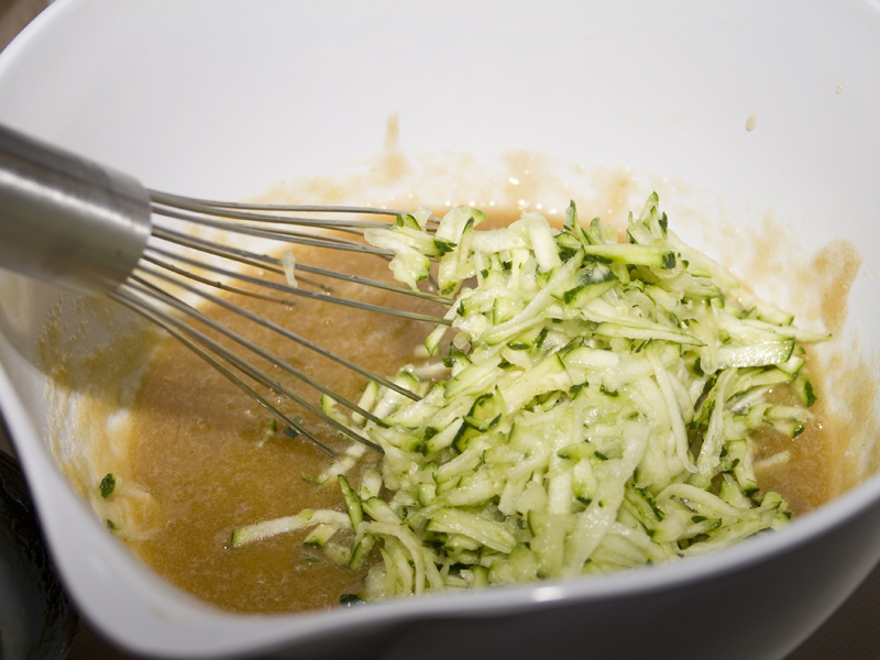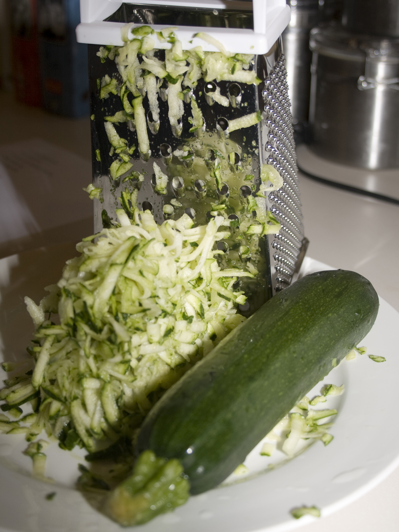 Start by shredding some zucchini. You’ll need about one medium-sized courgette (yes, I just used the fancy-pants term).