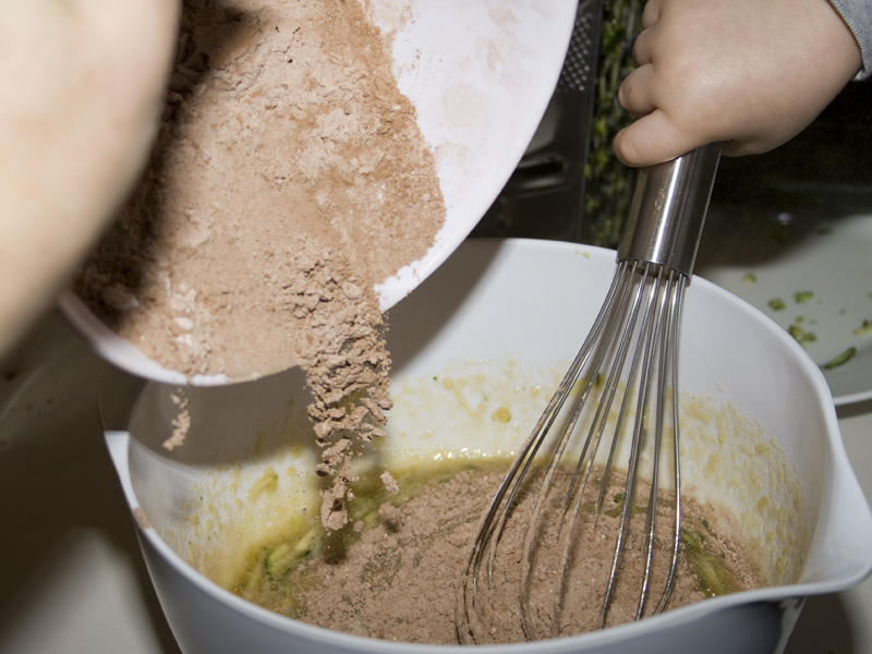 Some dry ingredients get stirred in. Those little hands belong to my son, who loves helping me bake. I don’t want any of you to think I have freakishly t.i.n.y. mitts.