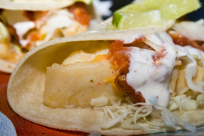 My first experience with fish tacos was in Maui. My husband and I went to a little dive in Kihei and drank Mai Tais and enjoyed numerous fish tacos. It was bliss. I was hooked (ha-ha-ha) at first bite (ok, I’ll stop now). Since returning from our second honeymoon, I’ve tried recreating the delicious spice and zest of the original tacos I fell in love with, but never quite got it right. Until these. Oh, baby.