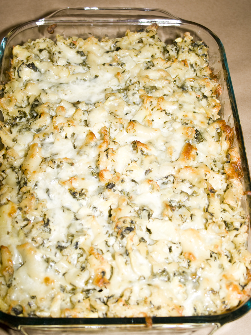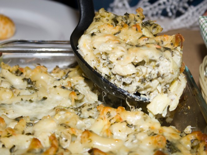 - Place mixture into greased 2.5 – 3 qt casserole dish and place the rest of mozzarella cheese on top