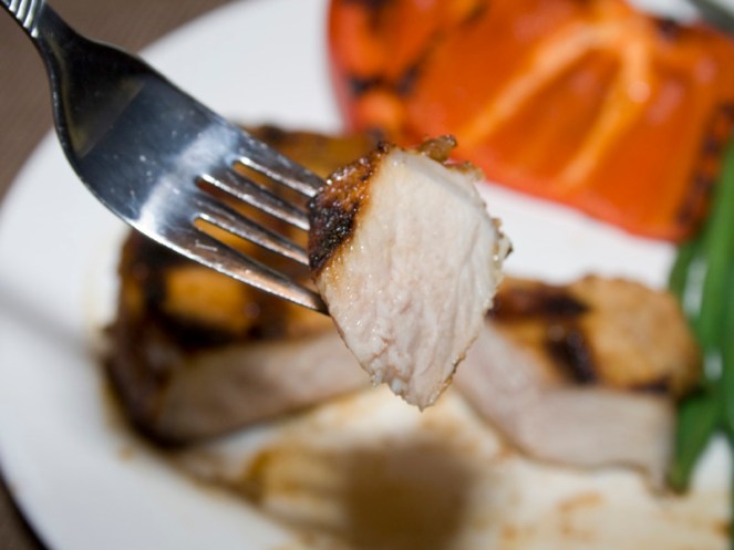 That was many birthdays ago, and my taste buds have developed a little. A very small little. I still can’t handle more than mild salsa, but I love love loved these chops. The marinade is just the right level of heat with a depth of flavor from orange juice and cinnamon that makes it mouth happy food! If you’ve never heard my rant about what temperature to cook pork to, see here. Overcooked pork is one of my biggest pet peeves. Besides feet. (shudder)