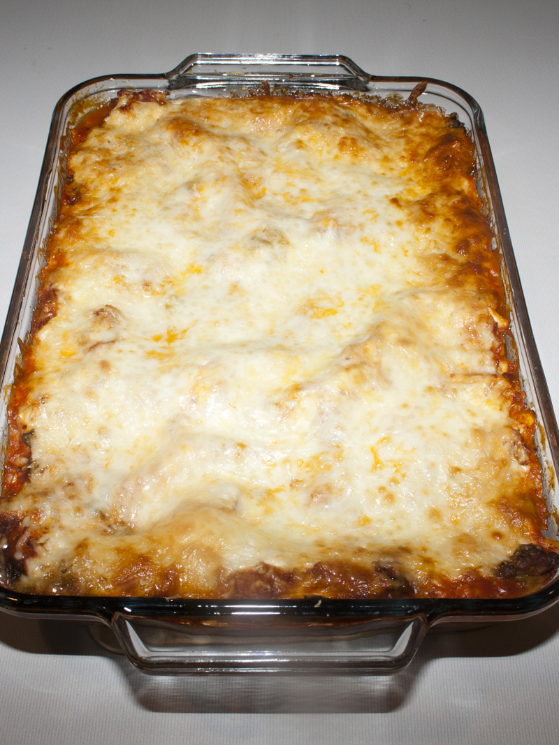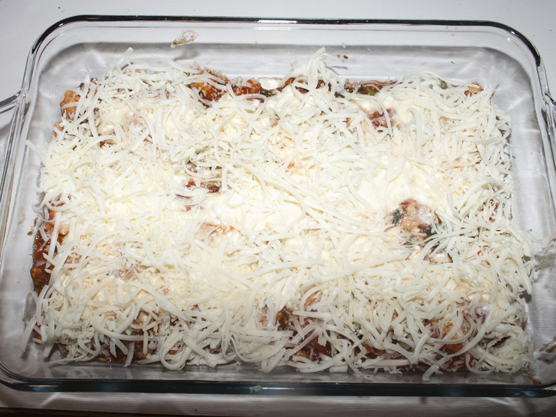 And repeat twice. Sauce, noodles, cottage cheese, mozzarella/Parm. Lovely layers, how delightful.