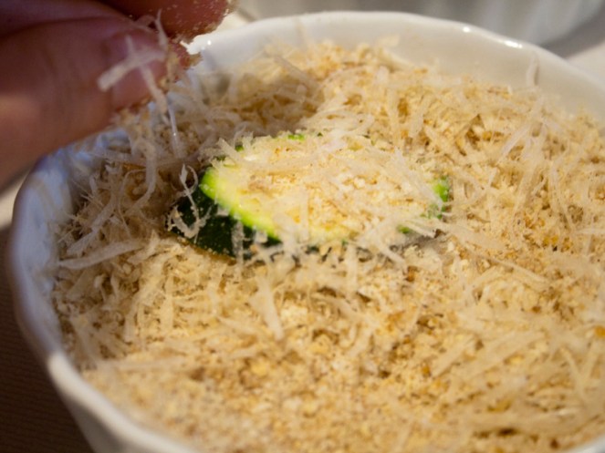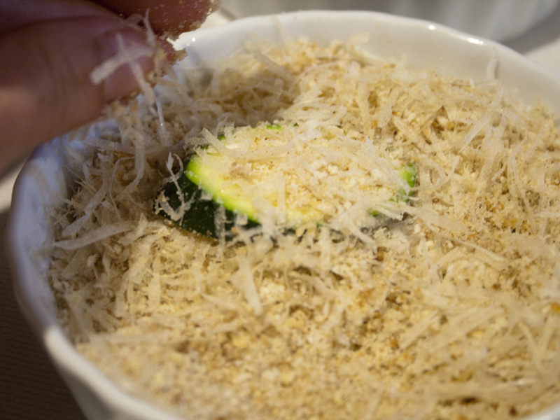 Then a dunk in some seasoned breadcrumbs mixed with Parmesan. The cheese gives these a nice tang.