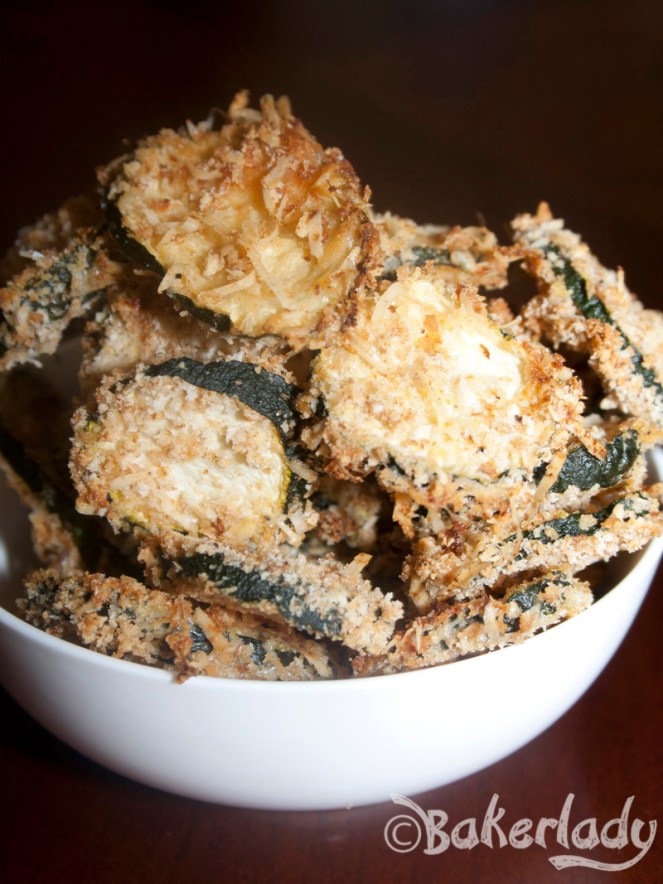 Zucchini is a really versatile ingredient. I’ve made zucchini “crab” cakes, chocolate zucchini bread, zucchini pizzas and even zucchini cookies in the past with great results. I was craving something to munch today and didn’t want to ruin the hard work I put in this week at the gym by eating an entire loaf of chocolate zucchini bread. Plus, my hubby has been after me for a snack that isn’t sweet. He says he’s sweet enough already. When I found this recipe for baked zucchini chips I knew Zack would love them. Bonus, they are a totally low-calorie snack that I was sure would satisfy my munchies.