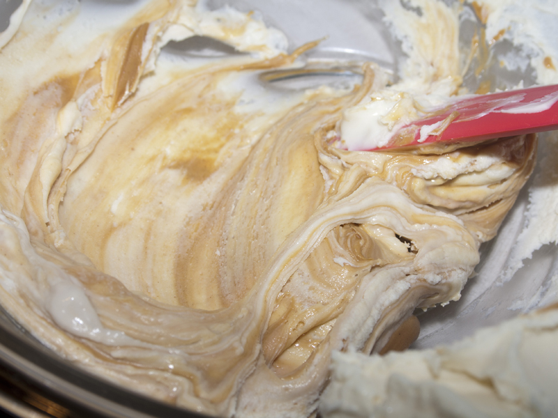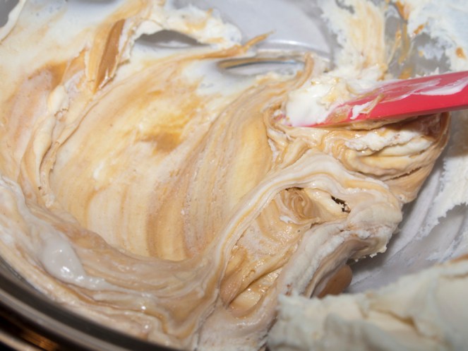 Then, you stir in peanut butter until it’s all combined.