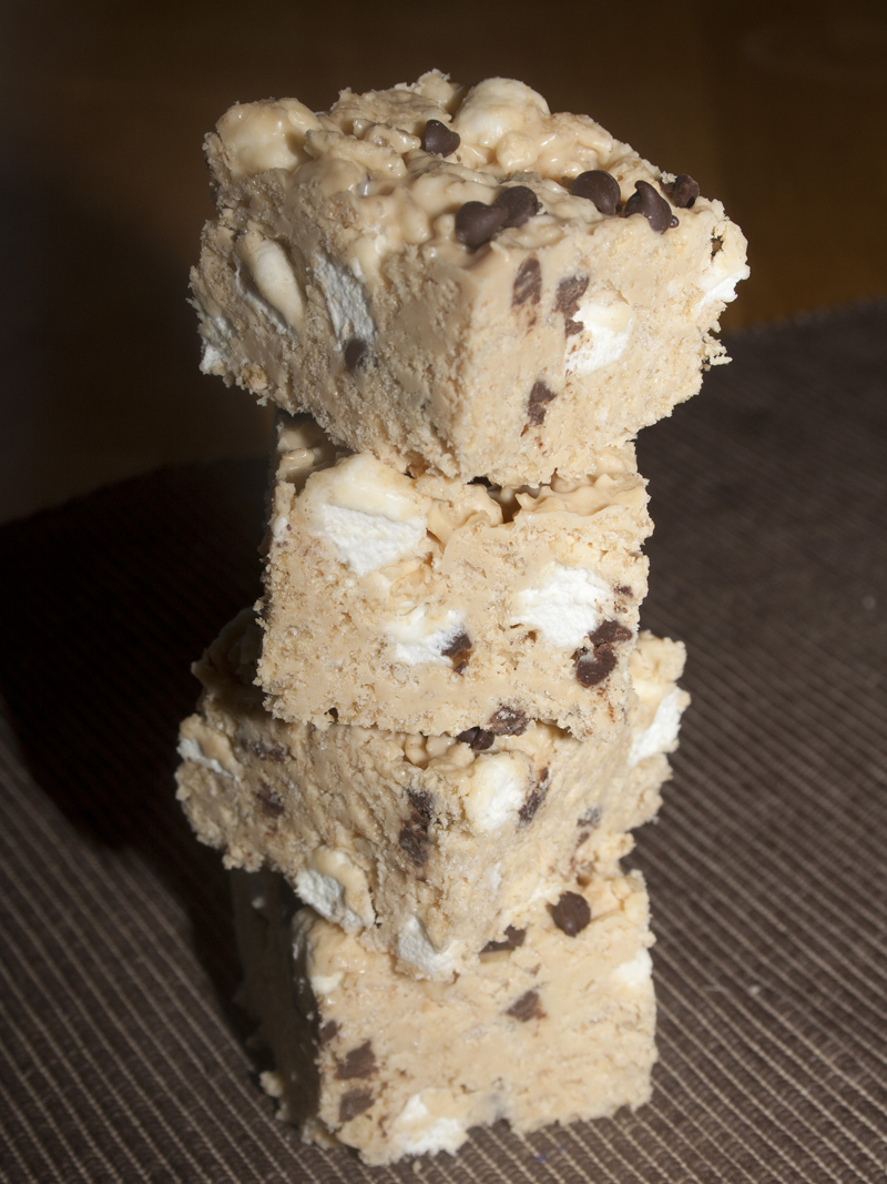 While we were school shopping at the local outlet mall, I smelled the unmistakable scent of chocolate on the air. I followed my nose to The Rocky Mountain Chocolate Factory store. There, I was tempted to buy a confection that looked like nothing I’d ever seen – an Avalanche Bar. Only my empty pocketbook and hands laden with a dozen full shopping bags kept me from forking over the close to $4 for a square of what looked like a rice krispie treat on crack. I came home and immediately put my computer to good use finding a copycat recipe.