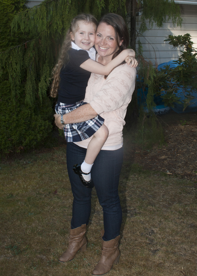 I took my daughter back-to-school shopping last week. We had a grand old-time preparing for the big first day of school. It was all fun and games until I realized that new school clothes meant she was actually heading off to school. Gulp. She started Kindergarten yesterday. My baby. She even (gasp!) rode the bus! She was so stinkin’ excited for her first day. And, she looked adorable in her brand spankin’ new duds. Yes…Mommy got new clothes too.