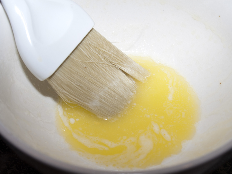 6 tablespoons (3/4 stick) unsalted butter, melted and cooled. Plus 1 extra tablespoon butter for brushing on pan
