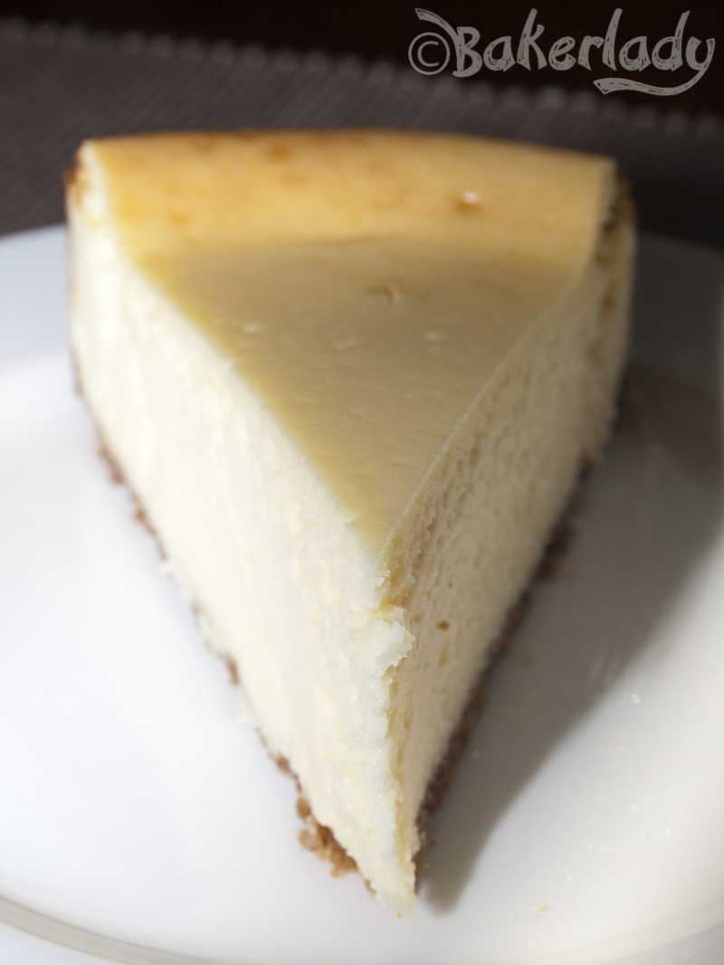 My guiltiest of guilty pleasures is cheesecake. I find it completely irresistible. It is the one dessert I absolutely cannot say no to. There are lots of cheesecake recipes floating around on Bakerlady, but I’ve never posted the classic New York Cheesecake recipe I absolutely adore. It’s from America’s Test Kitchen, who I always turn to for great tested recipes that turn out perfectly the first time, and every time. The secret to a great New York style cheesecake that’s dense with a suede texture is lots and lots of cream cheese and a low and slow baking method.