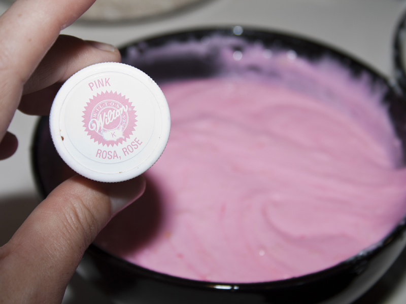 First of all, the food coloring you use is going to greatly impact the boldness and ease of coloring your batter. I used Wilton gel colors. They are awesome.