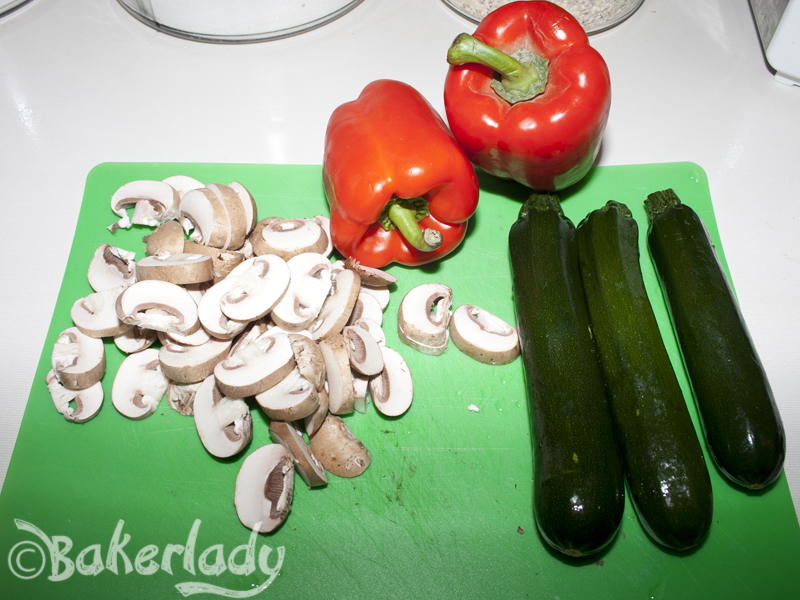 4. Toss zucchini, bell pepper and mushrooms with olive oil.