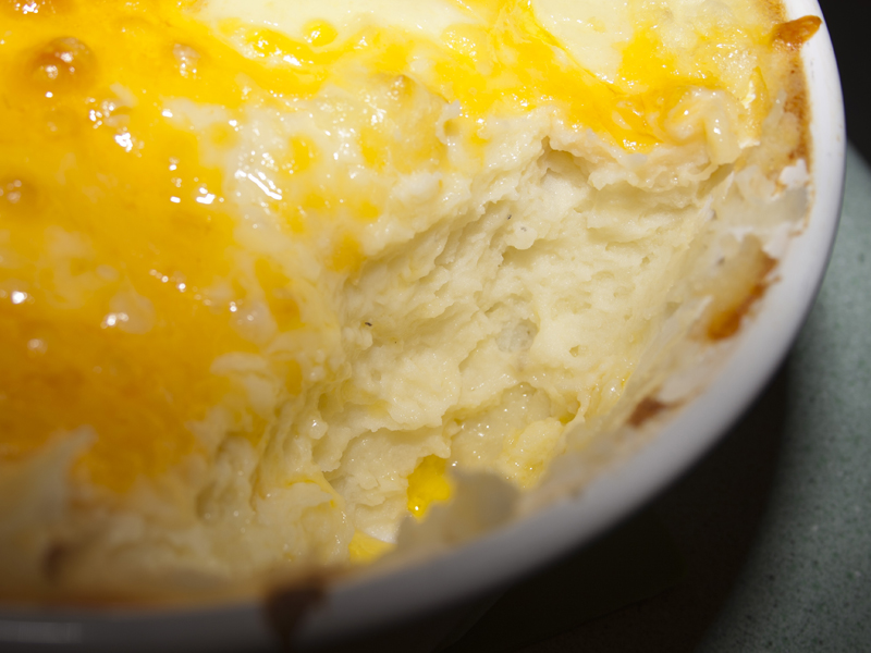 See that little puffy bit on the left? The edge pieces are light and fluffy with all the creamy goodness of mashed potatoes magnified by the oven. The inner parts are even better. See below. Rich potatoey gorgeousness. This will become your absolute favorite way to eat potatoes. I know, like you need another delicious potato recipe. I’m sorry. I told you this was the dark side.
