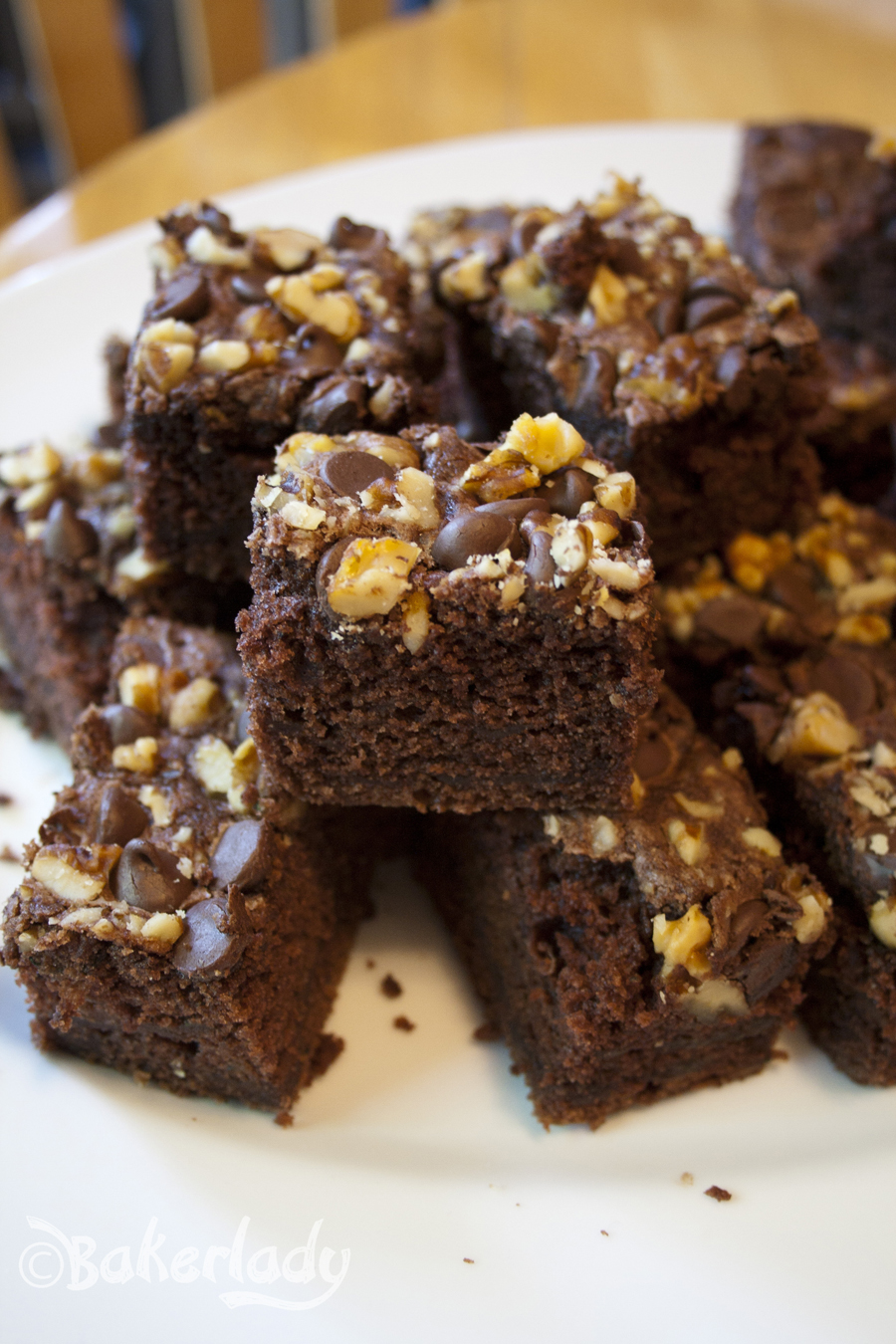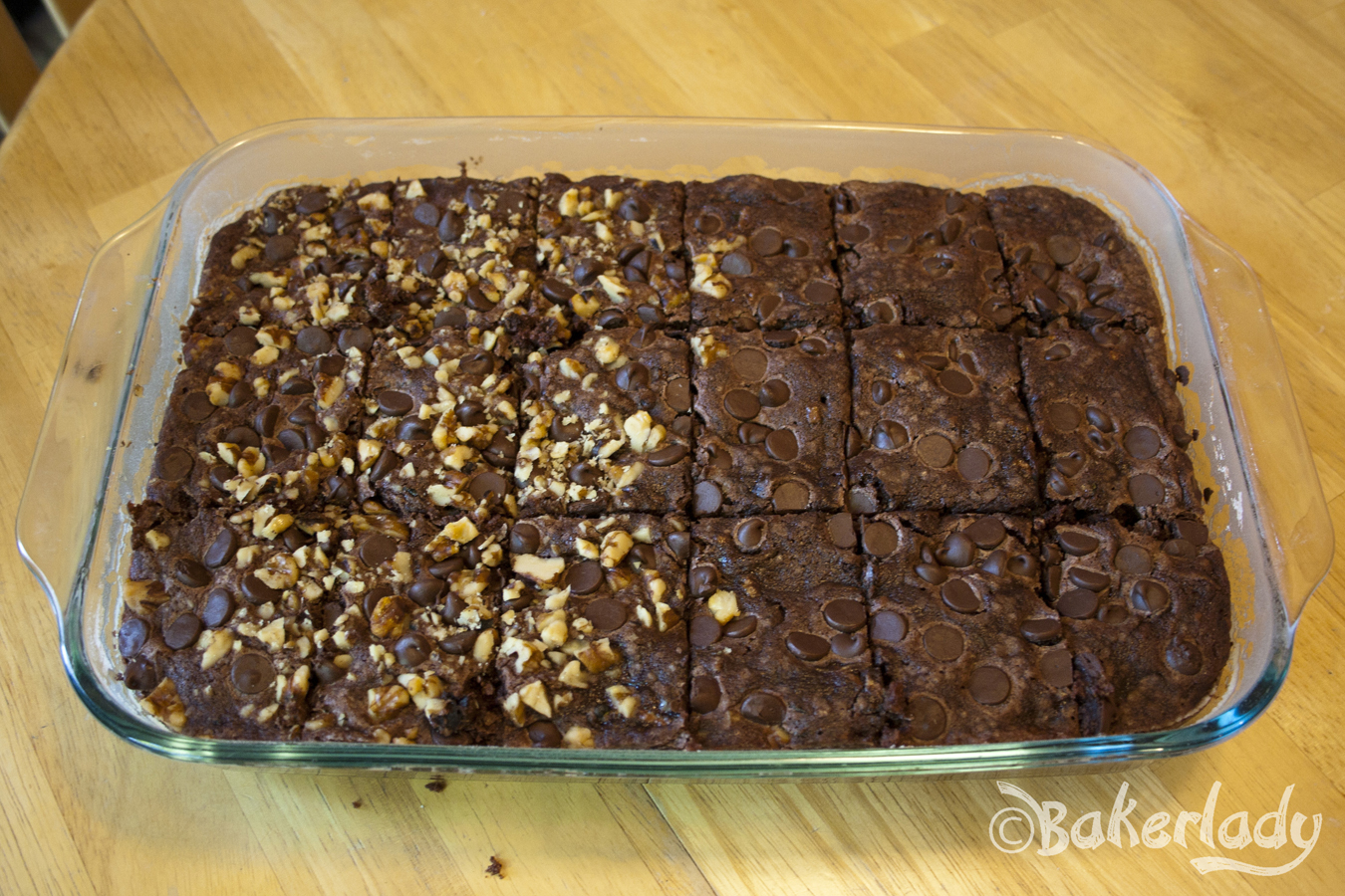 You bake this cake in a casserole dish and sprinkle the top with walnuts and chocolate. It’s a well known fact that I’m not a nut person. At least, not in my baked goods. Also, my sweet daughter is allergic to walnuts. So I make mine half boy, half girl. I’ll let you figure out for yourself which side is which.